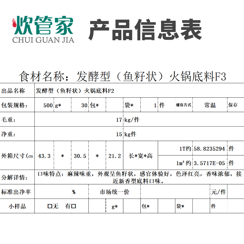 感谢您选择我们的发酵型(鱼籽)火锅底料,我们将竭诚为您提供优质的产品和服务。祝您用餐愉快!