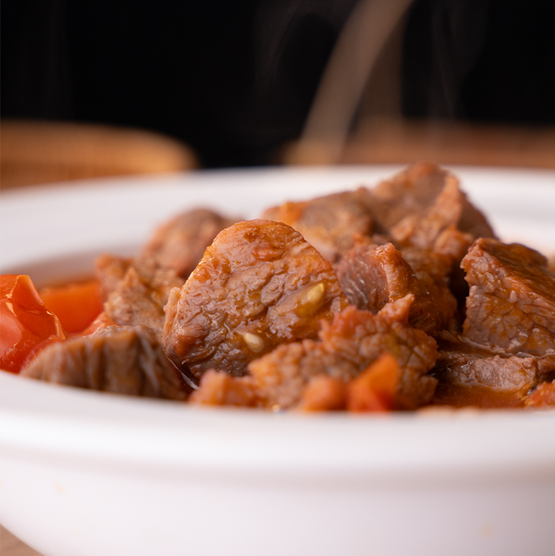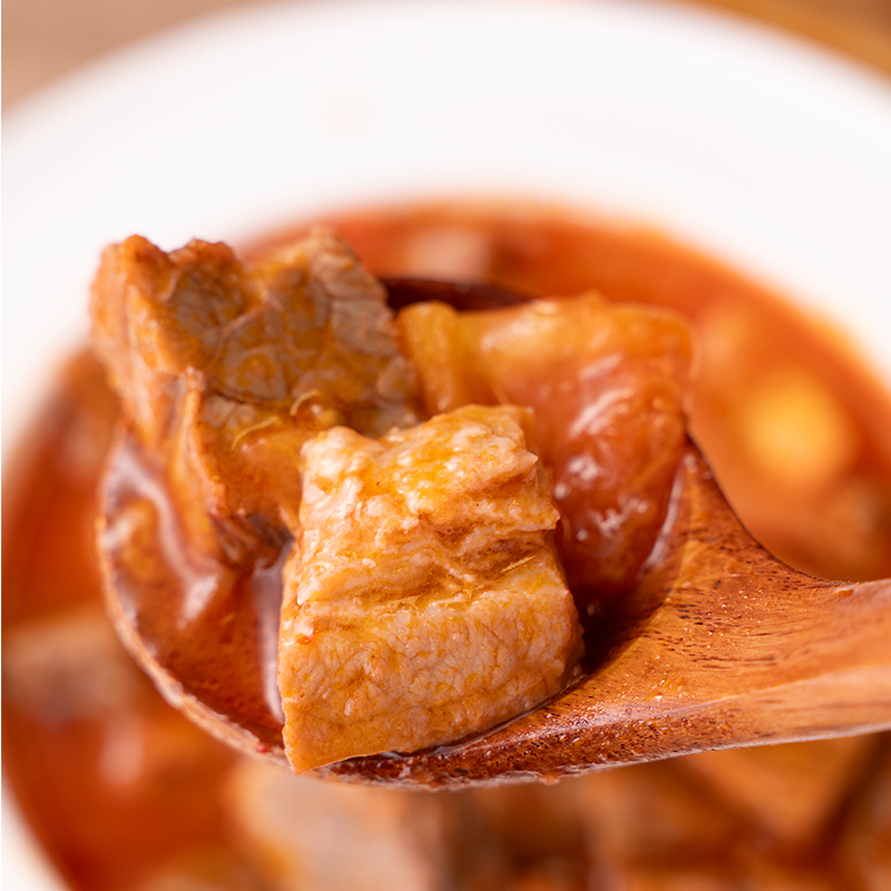 一锅传承,百年醇香。精选牛腩与筋络,配以二十余味香料慢火细耙,熬出满锅灵魂红油。牛肉耙而不散,入口化渣,每一丝纤维都吸饱了浓郁汤汁,香辣裹着醇厚,在舌尖掀起热浪风暴! 大块带筋的满足,是深夜最踏实的慰藉。一口入魂,耙糯香浓,辣而不燥。搭配一碗米饭,便是对平凡日子最隆重的犒赏。